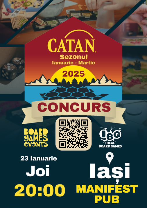 Acest eveniment face parte din sezonul Ianuarie-Martie 2025, la finalul căruia vom face un total general al punctelor acumulate în toate participările la competițiile amicale de Catan, iar jucătorul cu cele mai multe astfel de puncte va primi un joc din partea Ideal Board Games. Vom premia persoana care vine la cele mai multe evenimente marca Board Games Events de orice fel în aceste 3 luni.